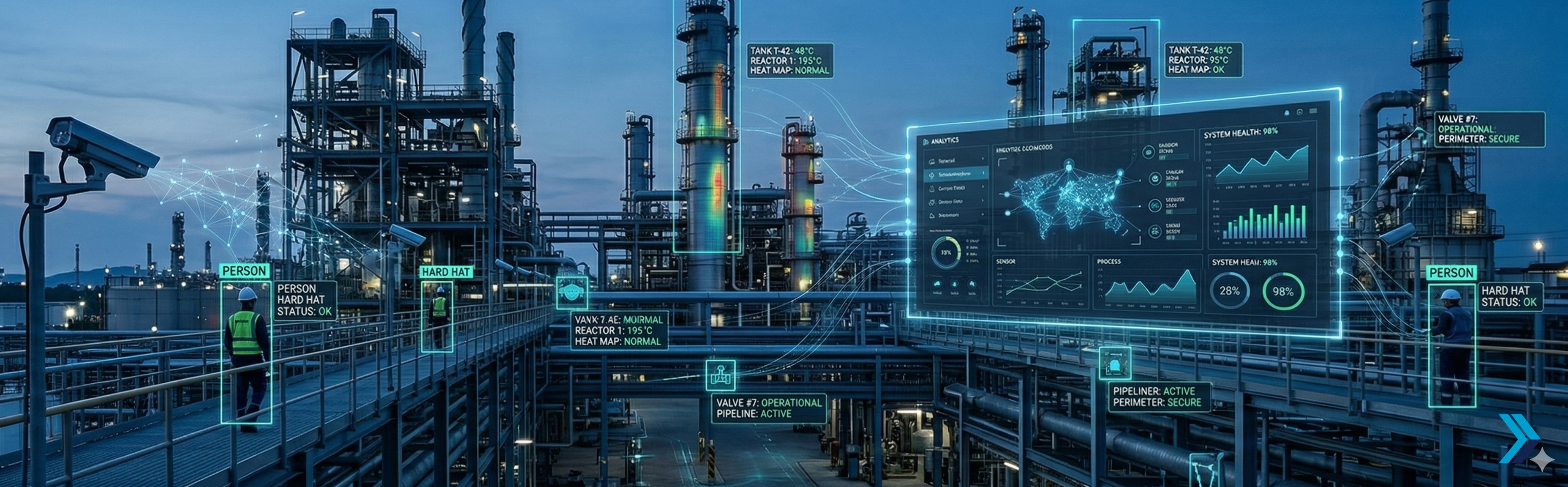 Sistemas de monitoreo IP para industria, O&G, puertos y perímetros críticos con analítica de video.